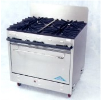 range - commercial, 4 burner, oven, broiler, (requires propane) |