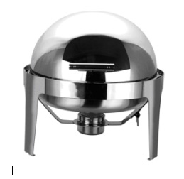 dish, 6qt, round chrome/gold, roll-top |